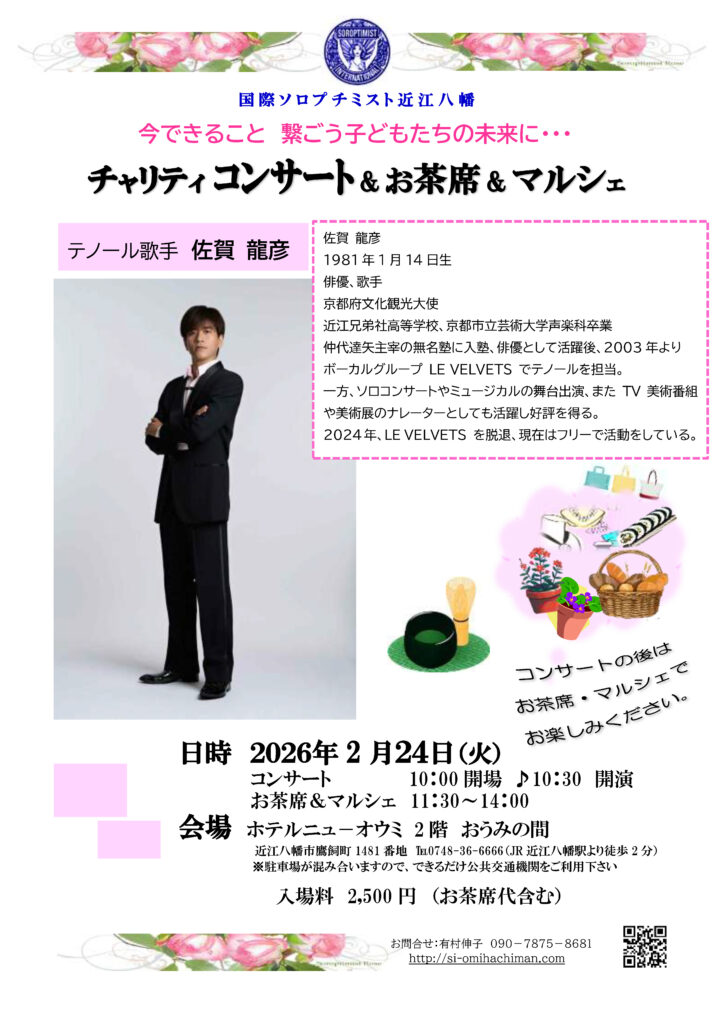 チャリティコンサート(テノール歌手 佐賀 龍彦)&お茶席&マルシェ